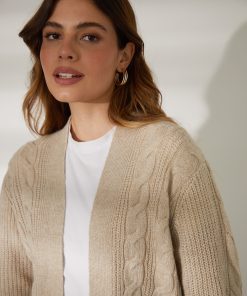 With cable knit detail down the front and on the arms, this knitted cardigan is a staple knit to add to your wardrobe.